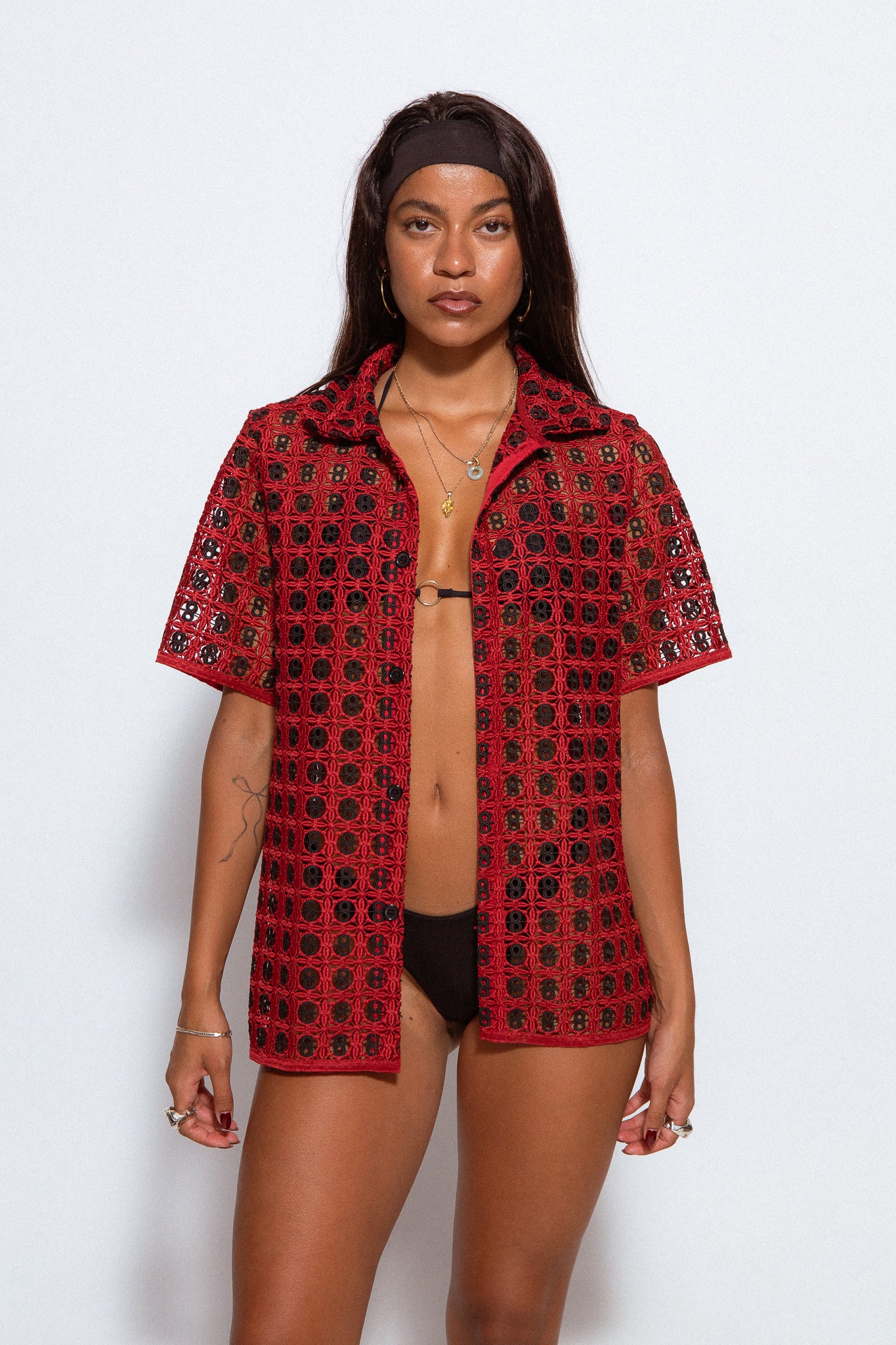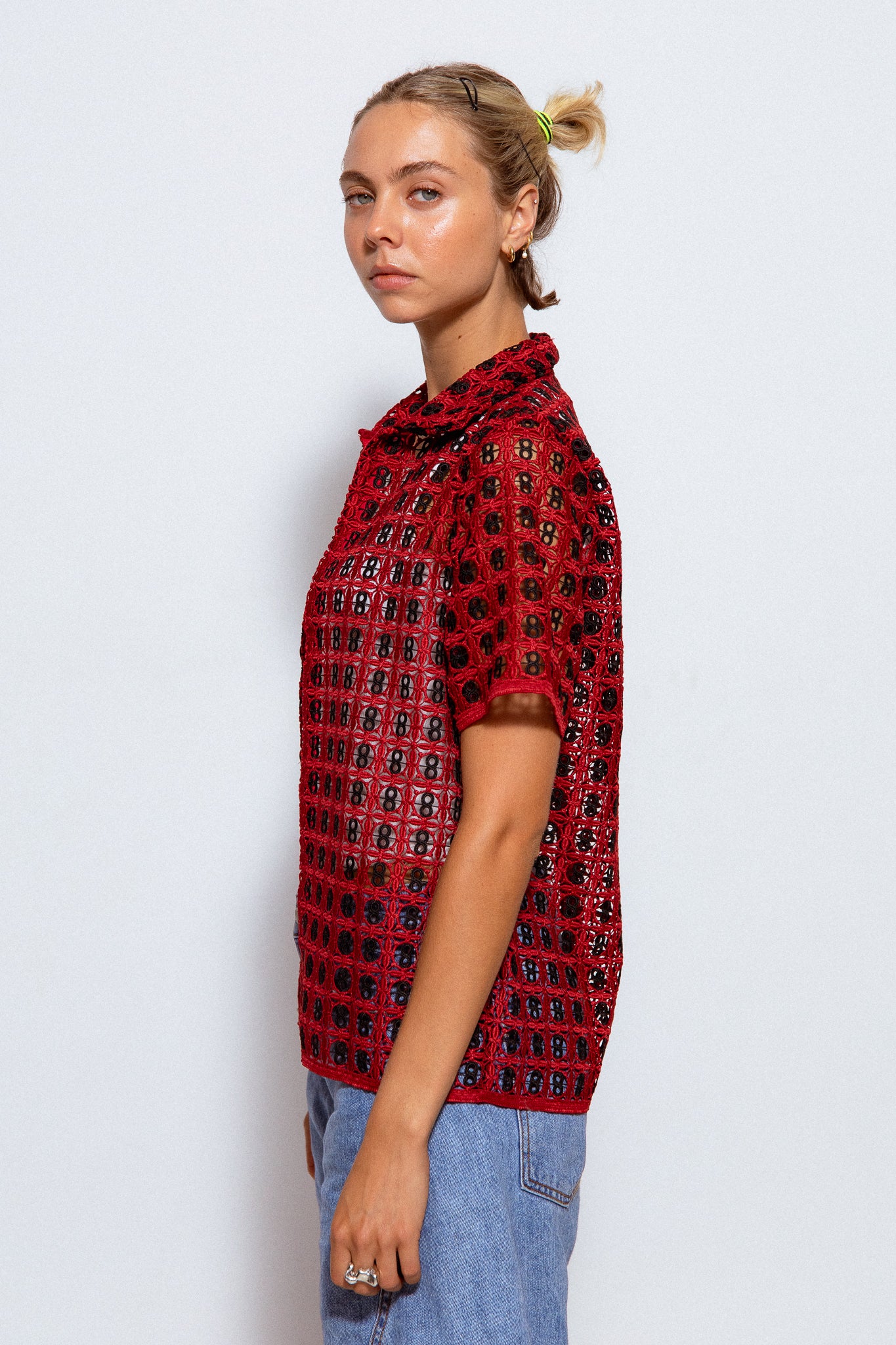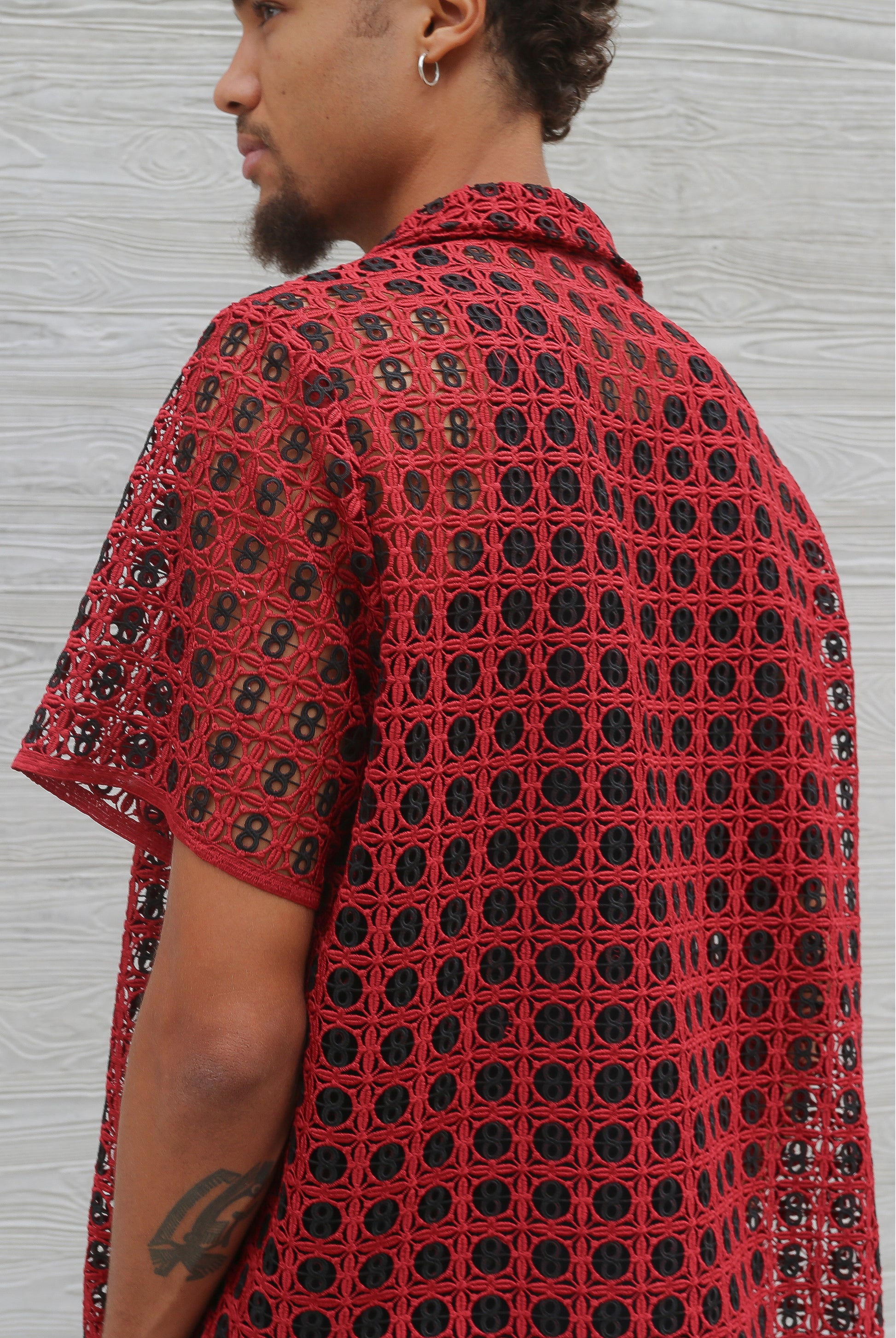 Custom-made red & black crochet. Pattern inspired by our playful past and primary colours.