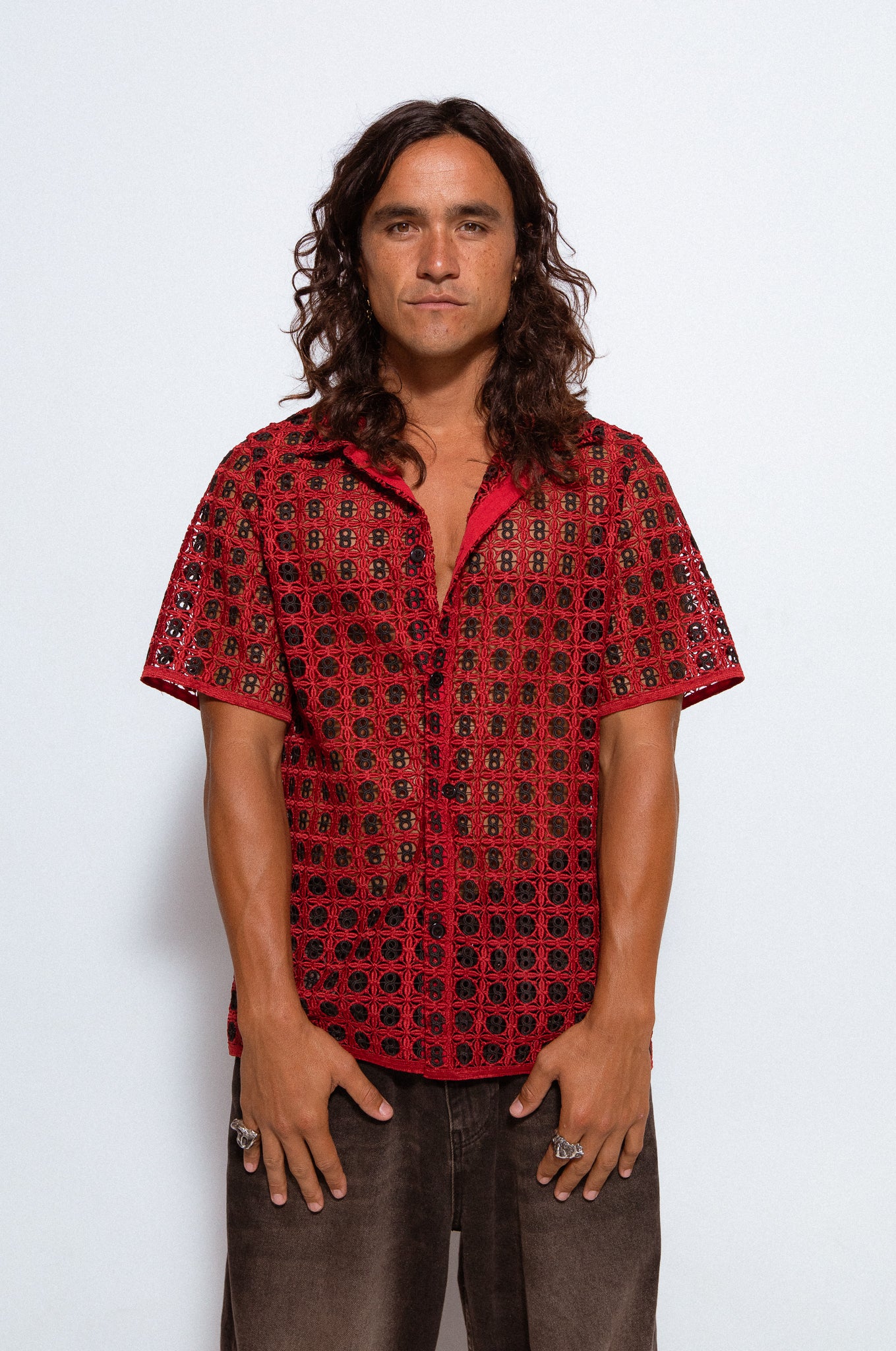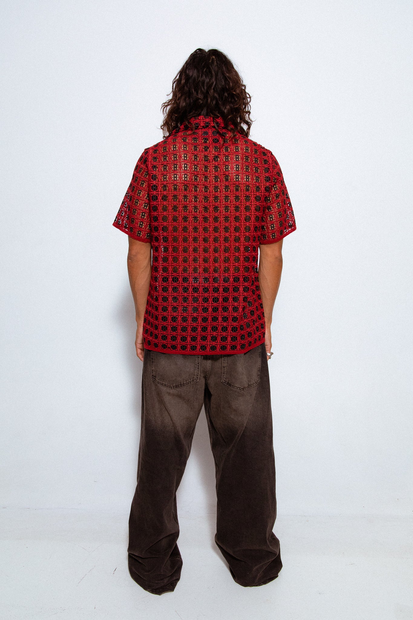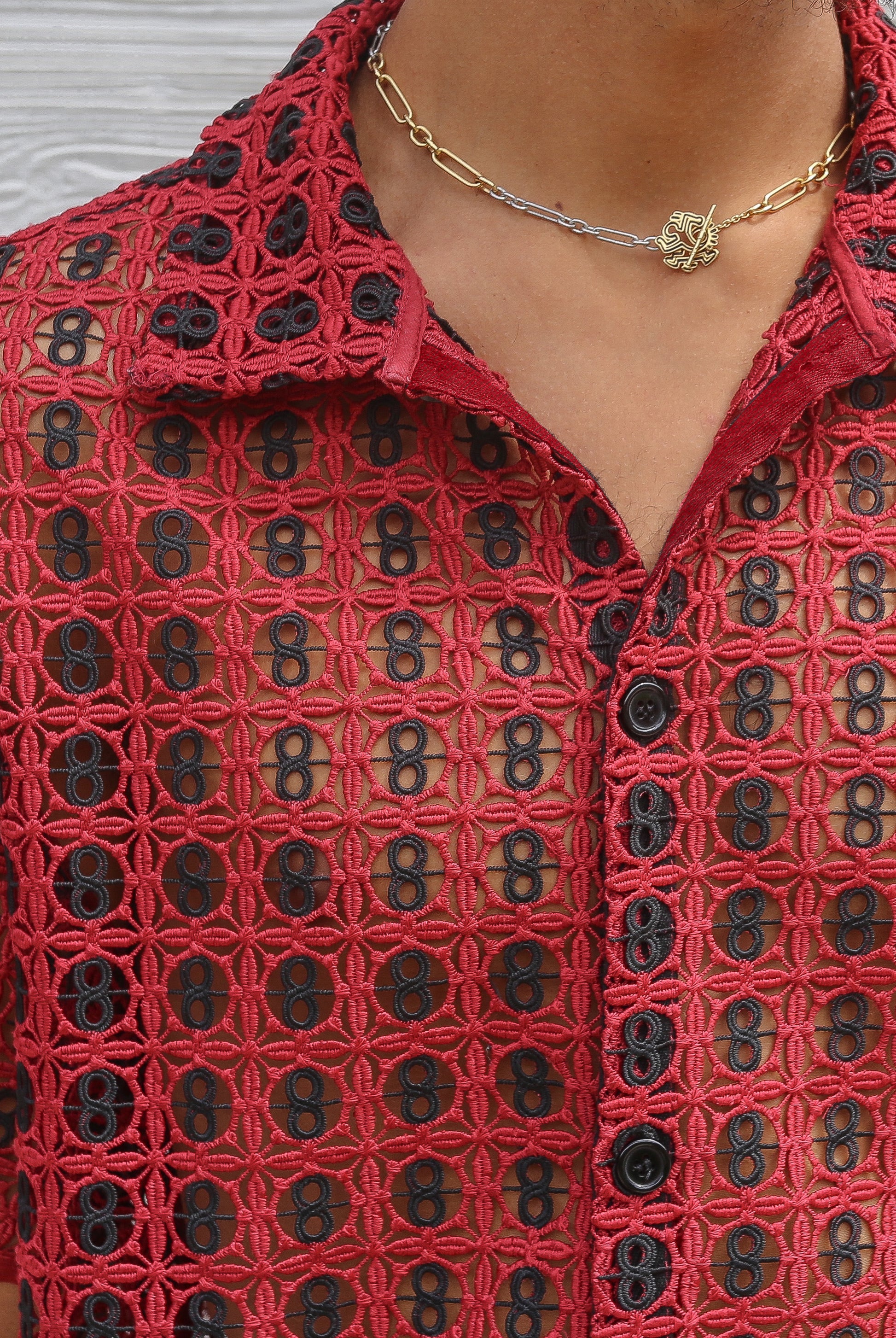 Custom-made red & black crochet. Pattern inspired by our playful past and primary colours.